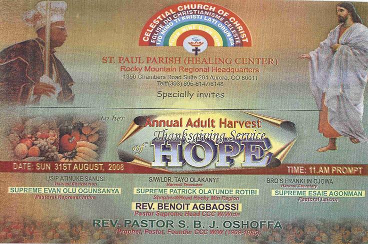 INVITATION!!!SamuelBilehou Oschoffa Miracle Land Parish,